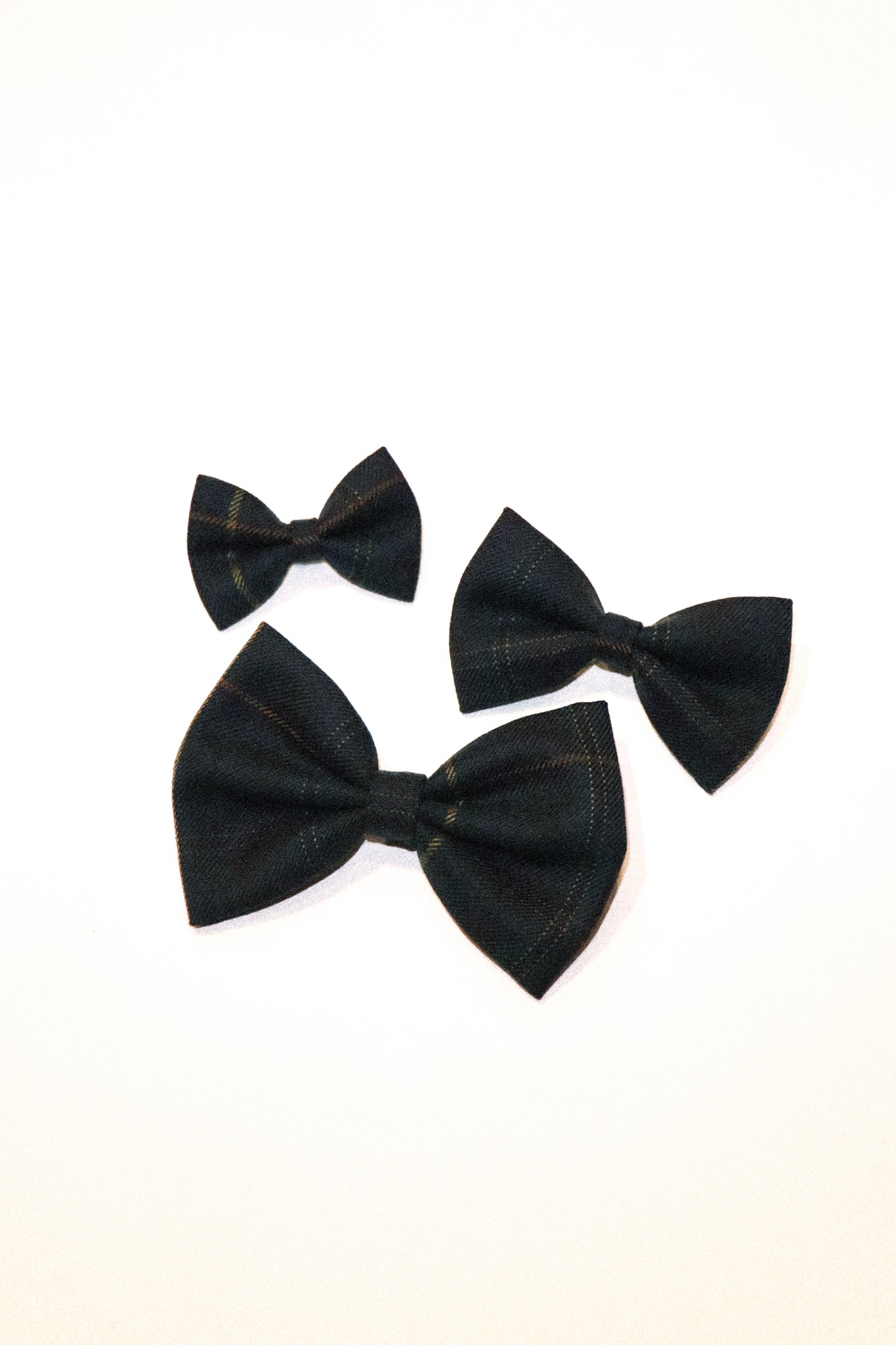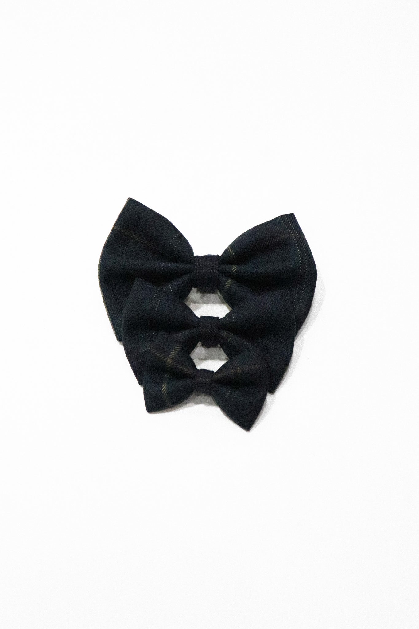 A classic holiday bow cut from our wool-blend green plaid. Double-layered for structure and charm, a timeless plaid accessory for the season.